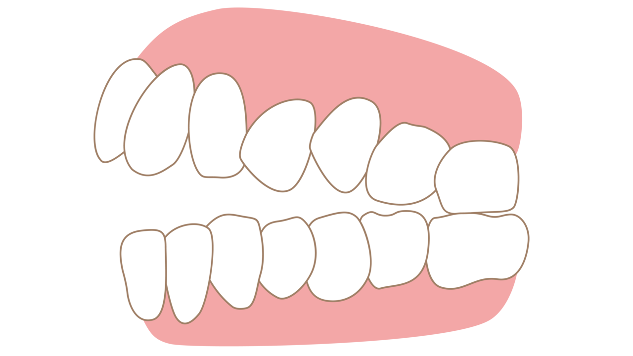 前歯を舌で押し出す癖がある人や、子供の頃に指しゃぶりの癖があった人は、前歯が外側に斜めに傾いてしまうことがあります。